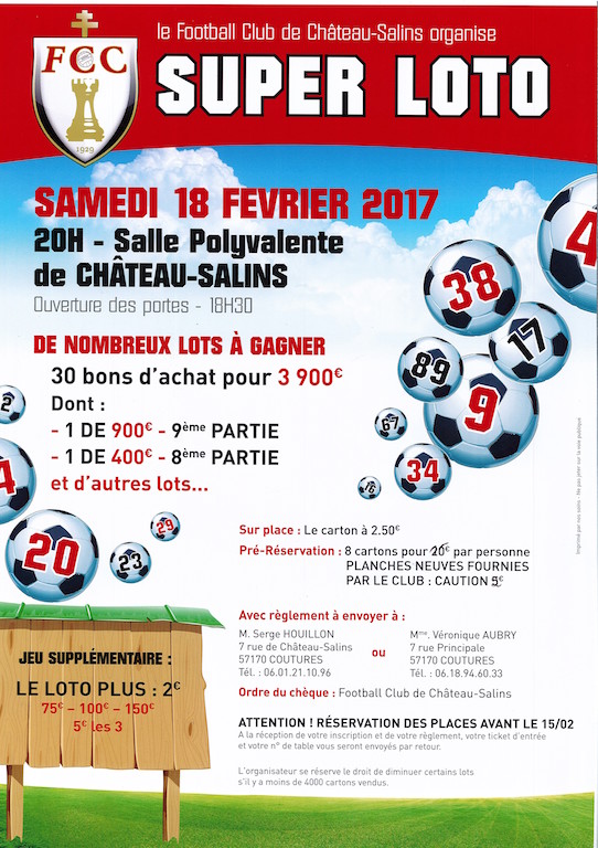 Le samedi 18 février, c'est à Château-Salins, salle polyvalente que les fans se retrouveront pour tenter de remplir les cartons à 20h.