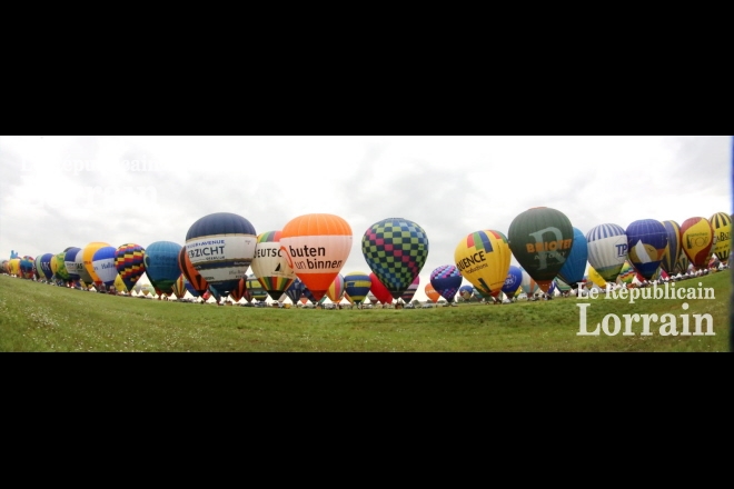 Les journalistes du Républicain de l'Edition de Briey nous annoncent que 456 ballons ont décollé du tarmac de la base aérienne de Chambley ce matin établissant ainsi un nouveau record du monde d'envol de masse de montgolfières. (l'ancien était de 433 ballons)