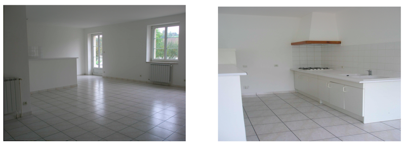 Cuisine ouverte sur salon séjour, douche, wc, 3 chambres