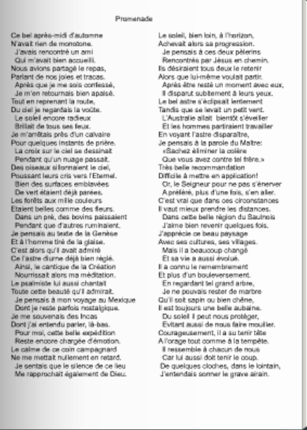 Au total, plus de deux cents poèmes, plus ou moins longs ; le plus court fait quarante vers, le plus long près de mille vers ! Mais ces écrits ne dorment pas sur les cahiers de l'abbé.