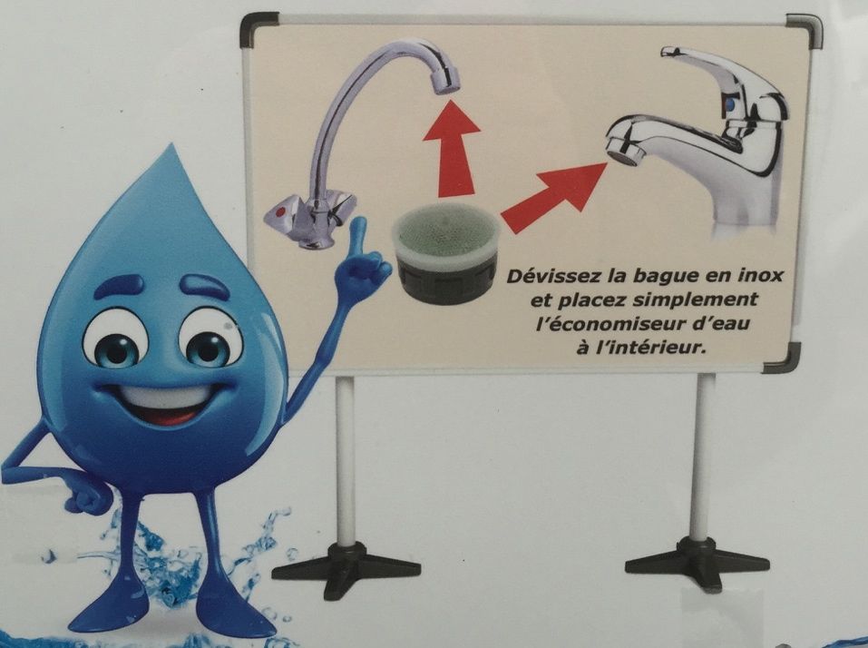 Ces petits régulateurs de jet que l'on place à l'intérieur de la bague en inox de chaque robinet permettraient d'économiser entre 10 et 12 litres d'eau par minute. Ils ont été proposés par l'Agence de l'eau et DuretEnergie dans le cadre de la valorisation des certificats d'économies d'énergie.