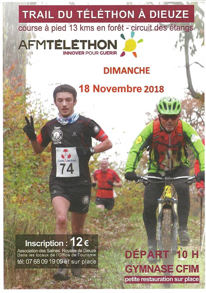 La course avait dû être reportée en raison de problème de sécurité en forêt en octobre dernier mais le Trail du téléthon organisé par l'association des Salines Royales de Dieuze aura bien lieu ce dimanche 18 novembre. En partenariat avec les Sapeurs pompiers, les Cyclos randonneurs, les médaillés militaires et l'ADPC de Dieuze, cette 4ème édition emmènera les coureurs sur le circuit des étangs, en forêt de St Jean.