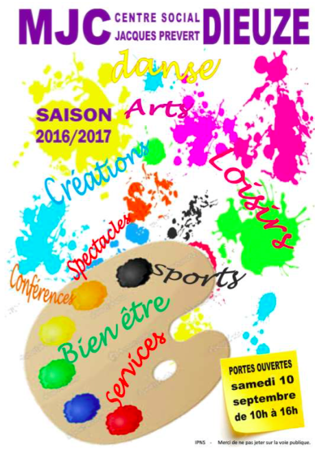 A l'aube de cette soixantième saison, avec les permanents, Anne Gamond à la direction, Marie-Claude Kruszynski à l'accueil, Béatrice Marchesin au service Enfance-Jeunesse, Sylvie Naït-Mansour à la comptabilité, Stéphanie Thisse au service social et Myriam Latz à l'entretien, et la trentaine de professeurs, animateurs et bénévoles, Evelyne Schlesser ouvrira les portes de cette grande bâtisse le samedi 10 septembre de 10h à 16h afin de permettre à chacun de découvrir la large palette d'activités et services proposés :